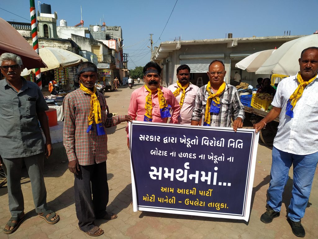 ઉપલેટા તાલુકાના મોટી પાનેલી ખાતે આજરોજ આમ આદમી પાર્ટી દ્વારા એક મૌન રેલીનું આયોજન કરવામાં આવેલ ખુબ ગાવાયેલ બોટાદ પ્રકરણ ખેડૂતો ઉપર પોલીસ ના દમનકારી વ્યવહાર સામે સૌરાષ્ટ્ર ભરમાં ઘેરા પ્રત્યાંઘાત પડ્યા છે ખાસ કરીને ખેડૂતો માં સરકારની ખેડૂત વિરોધી નીતિઓ અને ખેડૂતો પરના હત્યાચાર ની ચર્ચાએ જોર પકડ્યું છે ત્યારે આજરોજ મોટી પાનેલીમાં પણ આમ આદમી પાર્ટી દ્વારા બોટાદના પીડિત ખેડૂતોના સમર્થનમાં અત્રેના લીમડા ચોક થી મુખ્ય બજારોમાં ફરી એક મૌનરેલી નુ આયોજન કરવામાં આવેલ જેમાં કાર્યકર્તા ઓ એ પોલીસ અને સરકારના દમનકારી વલણ સામે કાલી પટ્ટી બાંધી વિરોધ પ્રદર્શિત કરેલ સાથેજ સરકાર અને પોલીસ સામે પાર્ટીના સિનિયર કાર્યકર્તા ડી. કે. ક્લોલા સાહેબ દ્વારા ઉગ્ર આક્રોશ વ્યક્ત કરતા જણાવેલ કે ગુજરાત ની પ્રજાએ અને ખેડૂતો એ ભાજપ સરકારને ખોબલે ખોબલે મત આપી પ્રજાના કલ્યાણ માટે અને ખેડૂતોના હિત માટે ગાંધીનગર માં બેસાડ્યા છે.