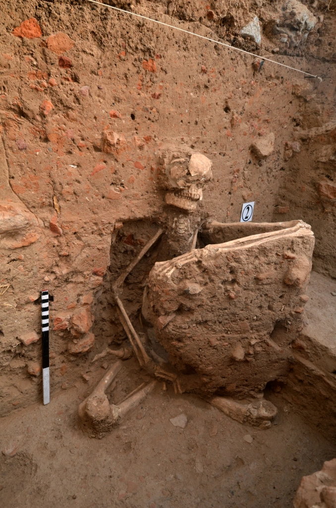 જમણો હાથ ખોળામાં રાખીને અને ડાબો હાથ છાતીના સ્તરે ઉંચો કરીને બેઠેલા ક્રોસ-પગવાળા સ્થિતિમાં મળી આવેલા હાડપિંજરે વૈજ્ઞાનિક રસ અને સ્થાનિક આદર બંને જગાવ્યો.