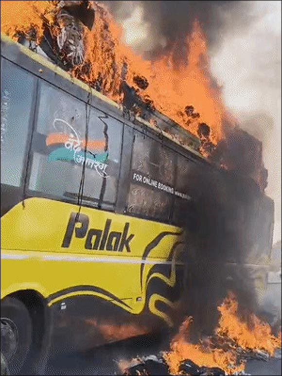 ફલાયઓવર પર સ્લીપર બસ સળગી: 43 મુસાફરોનો બચાવ