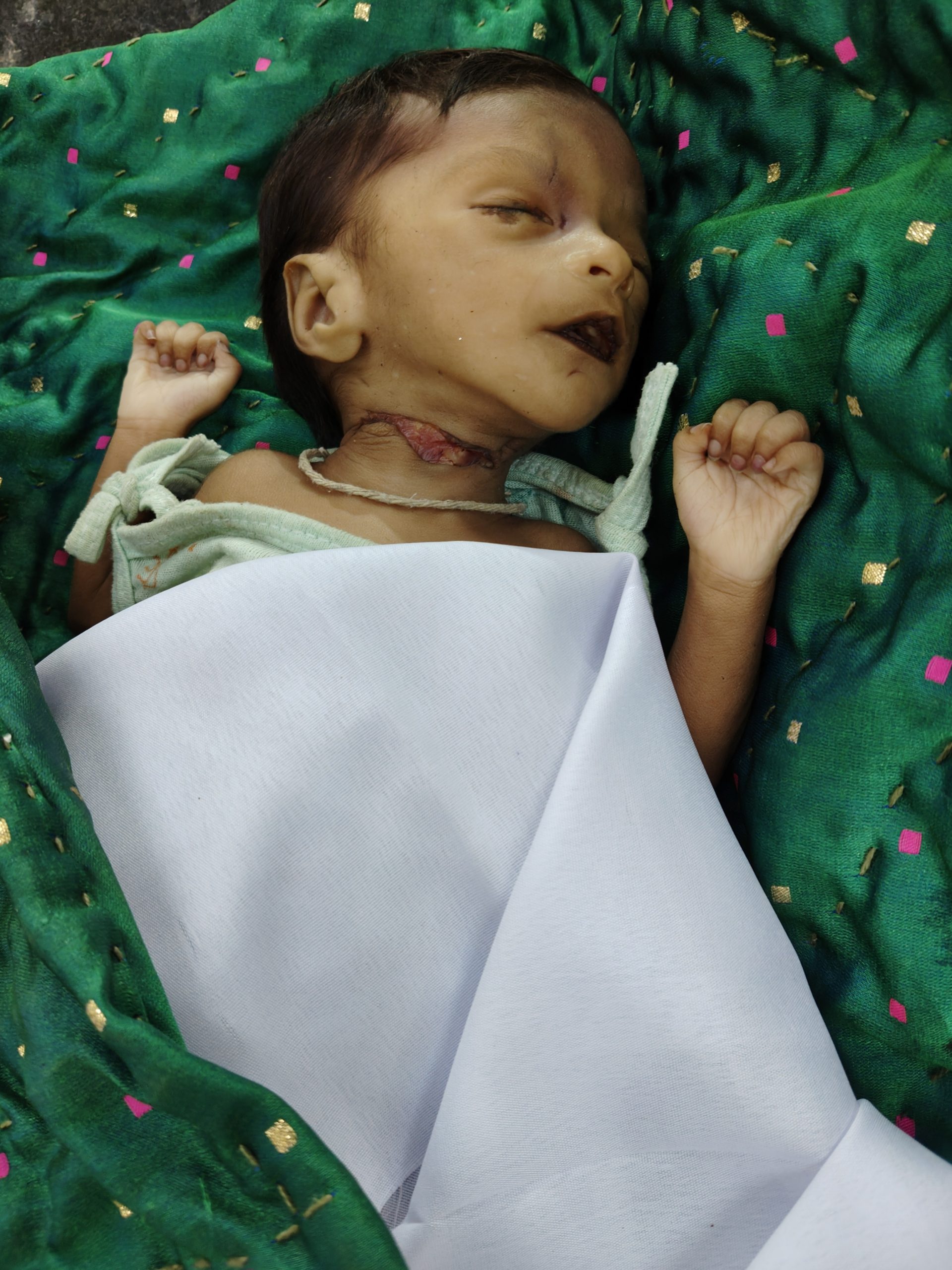 વધુ વિગતો મુજબ,યુવરાજનગરમાં રહેતા એક મહિનાના જયપાલ ઘુઘાભાઇ જાદવને રવિવારે બપોરે ગળે ઇજા થયેલી હાલતમાં બેભાન સ્થિતિમાં બાળકોની હોસ્પિટલમાં લઇ જવાયો હતો જ્યાં ફરજ પરના તબીબે બાળકને જોઇ તપાસી મૃત જાહેર કર્યો હતો. બાળકની માતાએ ઘટના અંગે વાત કરી તો ડોક્ટર પણ ચોંકી ગયા હતા. બનાવ અંગે જાણ કરાતાં આજી ડેમ પોલીસની ટીમ પણ હોસ્પિટલે દોડી ગઇ હતી.