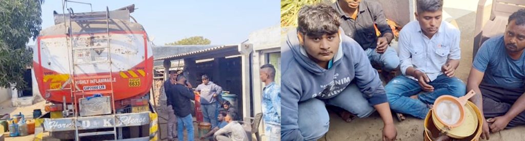 મળતી વિગતો મુજબ દેવભૂમિ દ્વારકા જિલ્લાના ખંભાળિયામાં રહેતા મહેન્દ્રસિંહ ઉર્ફે દિગુભા રવુભા જાડેજા પોતાના ઘરે ડીઝલ ચોરીનું રેકેટ ચલાવતો હોવાની બાતમીના આધારે સ્ટેટમોનીટરીંગ સેલના ડીઆઈજી નિર્લિપ્તરાય અને ડીવાયએસપી કે.ટી. કામરિયાની સુચનાથી પીએસઆઈ એસએચ ગઢવી અને તેમની ટીમે દરોડો પાડ્યો હતો. આ દરોડામાં સુત્રધાર મહેન્દ્રસિંહ તથા ભાવેશ રવાભાઈ સારસિયા, ધર્મેન્દ્રસિંહ જીતુભા જાડેજા અને પ્રદિપ રવાભાઈ સારસિયાની ધરપકડ કરવામાં આવી હતી.