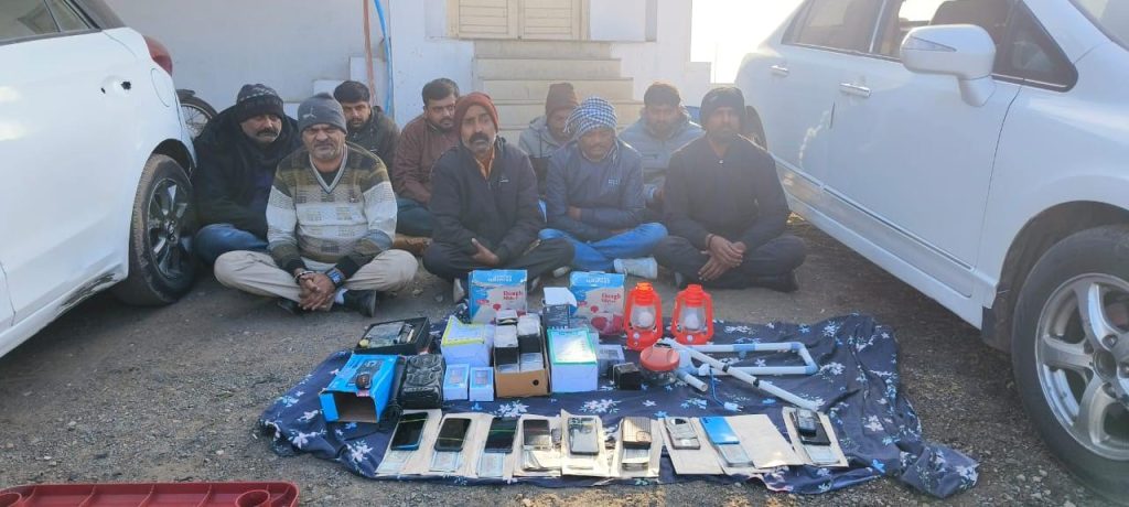 જેમા જુગારનો અખાડો ચલાવનાર ભાવેશ રાધાકાંત ઝા (રહે. અમદાવાદ, મેઘાણીનગર), જુગાર ચલાવનાર જનક કાળુભાઇ વિકમા (રે. ચોટીલા, ખુશીનગર), સેવક અખિલેશ શાધિપાલસિંહ રાજપૂત અને ભૂપેન્દ્રસિંહ રામધ્યાનસિંહ રાઠોડ (રહે. અમદાવાદ) ઉપરાંત જુગાર રમતા ઉમેદ બાબભાઇ ખાચર (રે. ફાડદંગ, તા. રાજકોટ), જયદિપ ઘુઘાભાઇ ખાચર (રે. ખવડી, તા. ચોટીલા), શરાફખાન ઉર્ફે મુન્ના હનીફખાન પઠાણ (રે. રેલનગર, રાજકોટ), ગજેન્દ્રસિંહ ઉર્ફે ગજુભા કનકભાઇ ખાચર (રે. કુવાડવા રોડ, રાજકોટ), રવિ ઉમેદભાઇ વિકમા (રે. સાલેખાડા, તા. ચોટીલા) અને જુગાર રમાડવામા મદદ કરનાર એક સગીરને ઝડપી લઇ એરપોર્ટ પોલીસ સ્ટેશનને સોંપી ગુનો નોંધાવ્યો હતો. જયારે જુગાર ધામ ચલાવનાર મુખ્ય આરોપી ઇરફાન દિવાન (રે. કુવાડવા, તા રાજકોટ) વાળો ફરાર થઇ જતા તેની શોધખોળ હાથ ધરી છે. પોલીસે પટ્ટમાથી રૂ. 1,18,355 ની રોકડ, મોબાઇલ નં 11 અને બે વાહન મળી કુલ રૂ. 12,03,055 નો મુદામાલ કબજે કર્યો હતો.