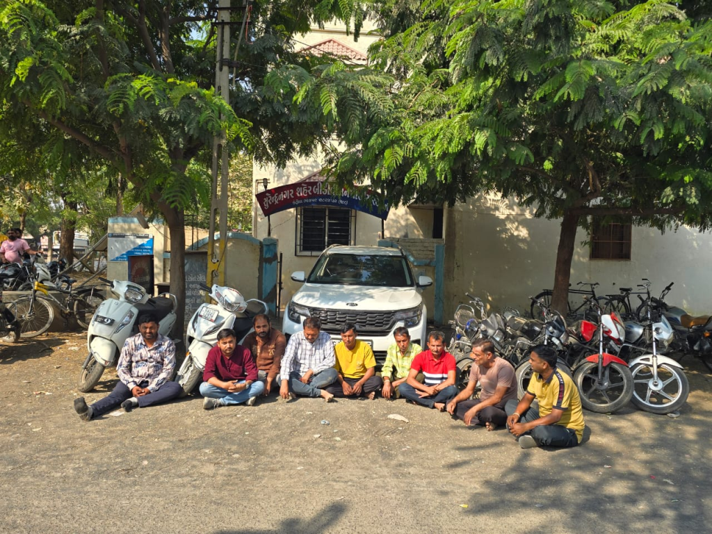 સુરેન્દ્રનગર જિલ્લામાં કાયદો વ્યવસ્થા સ્થિતિ ખાડે ગઈ હોય તેવું દેખાઈ રહ્યું છે. સુરેન્દ્રનગર શહેર અને જીલ્લામાં ગેર પ્રવૃતિઓ વધી રહી છે. સુરેન્દ્રનગર સ્થાનિક પોલીસને ઉઘતી રાખી સ્ટેટ મોનીટરીંગ સેલ દારૂૂ અને જુગાર ઉપર દરોડા પાડી રહી છે. ત્યારે વધુ એક વખત સુરેન્દ્રનગરમાં રાજ રેસ્ટોરન્ટની પાછળ આંબેડકરનગરમાં ચાલતી ઘોડી પાસાની જુગાર ક્લબ ઉપર સ્ટેટ મોનીટરીંગ સેલે દરોડો પાડી સ્થાનિક પોલીસની ઉઘ ઉડાડી દીધી હતી. આ દરોડામાં ઘોડીપાસાની જુગાર ક્લબ ચલાવનાર આંબેડકરનગરમાં રહેતા મનસુખ ઉર્ફે ચકો રણછોડભાઈ પરમારના મકાનમાંથી જુગાર રમતા સુરેન્દ્રનગરના અમિત કાનજી રાઠોડ, રામા રાણા ગમારા, વિશાલ વિનોદ મઢવી તેમજ રાજકોટના આંબેડકરમાં રહેતા દિપકકુમાર ધનજી દાફડા, ચંદુ કરશન મહીડા, માધાપર ચોકડી પાસે રહેતા કુલદીપસિંહ રણજીતસિંહ રાઠોડ,ભગવતીપરામાં રહેતા ભુપત દેવાભાઈ બોરીચા અને સુરેન્દ્રનગરના ગાંધી હોસ્પિટલ પાછળ રહેતા રમેશભાઈ જસવંતભાઈ રાઠોડની ધરપકડ કરી હતી.જયારે આ દોરડામાં રાજુ ડાંગર, પ્રદીપ ઉર્ફે પાડો સોલંકી, કાના ખત્રી, તેજસિંહ ઉર્ફે ભૈયો અને રવિ નામના પાંચ આરોપીઓ ફરાર થઈ ગયા છે. પોલીસે રૂૂ. 5,41,320રોકડા તેમજ 7 વાહનો અને મોબાઈલ સહીત રૂૂ. 23,05,590નો મુદ્દામાલ કબજે કર્યો હતો. સ્ટેટ મોનીટરીંગ સેલના ડીઆઈજી નિર્લિપ્ત રાયની સુચના અને ડીવાયએસપી કે.ટી.કામરીયા સીધા સુપરવિઝન હેઠળ સ્ટેટ મોનીટરીંગ સેલના પીએસઆઈ એસ.બી.ગરચર અને તેમની ટીમે કામગીરી કરી હતી.