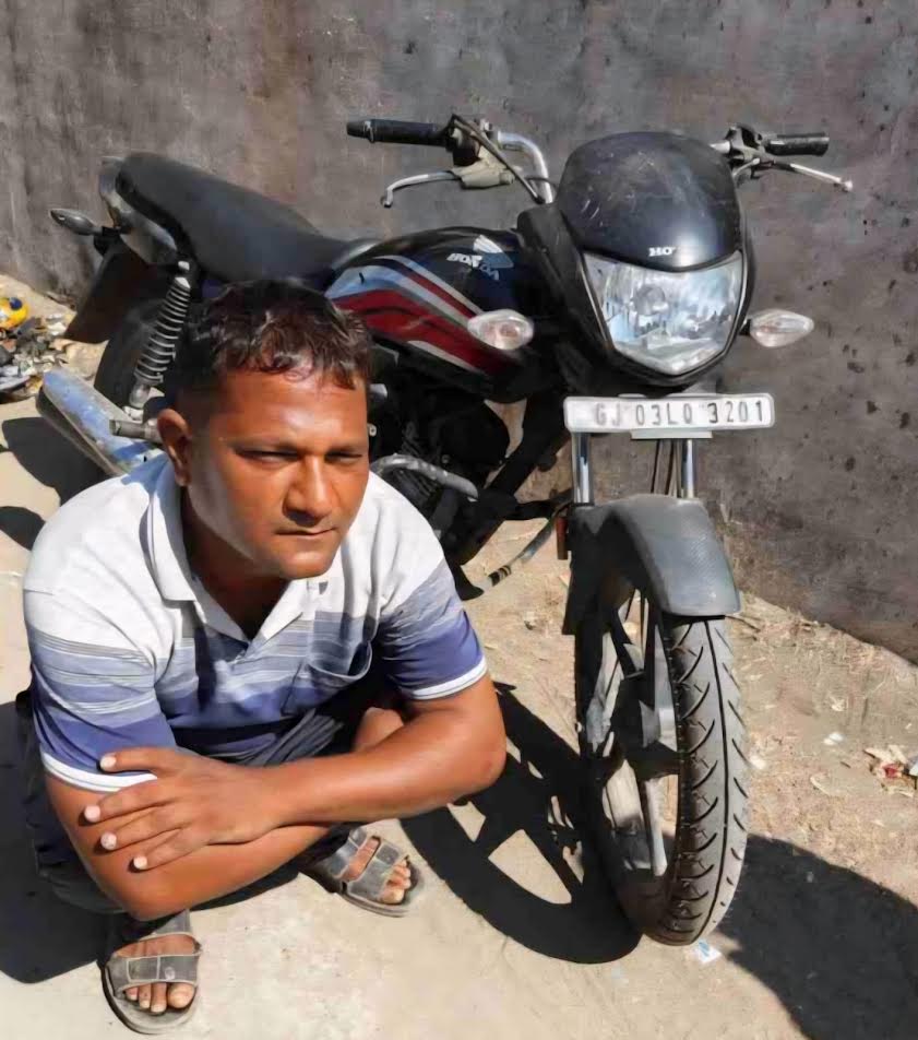 જામનગર નજીક દડીયા ગામમાં રહેતા અને માર્કેટિંગ યાર્ડમાં દુકાન ચલાવતા વેપારી દીપેશભાઈ ચંદુલાલ લખીયર કે જેઓ ગત બીજી તારીખે પોતાનું બાઈક લઈને કાશી વિશ્વનાથ રોડ પર એક કાચના વિક્ર્તાને ત્યાં ખરીદી કરવા માટે ગયા હતા, અને પોતાનું મોટરસાયકલ દુકાનની બહાર પાર્ક કરીને રાખ્યું હતું. દરમિયાન તેઓનું બાઈક ચોરી થઈ ગયું હતું.