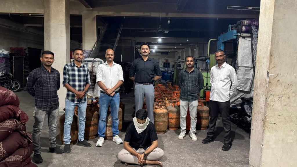 રાજકોટ જિલ્લાના જેતપુરમાં સ્પેશિયલ ઓપરેશન ગ્રુપ દ્વારા મોટી કાર્યવાહી કરવામાં આવી છે. જેતપુરના ભાદર નદીના સામા કાંઠે આવેલા વાસુકી ઉદ્યોગનગરમાં SOGએ દરોડા પાડીને કોમર્શિયલ ગેસ સિલિન્ડરની ગેરકાયદેસર સંગ્રહખોરીનો પર્દાફાશ કર્યો છે.