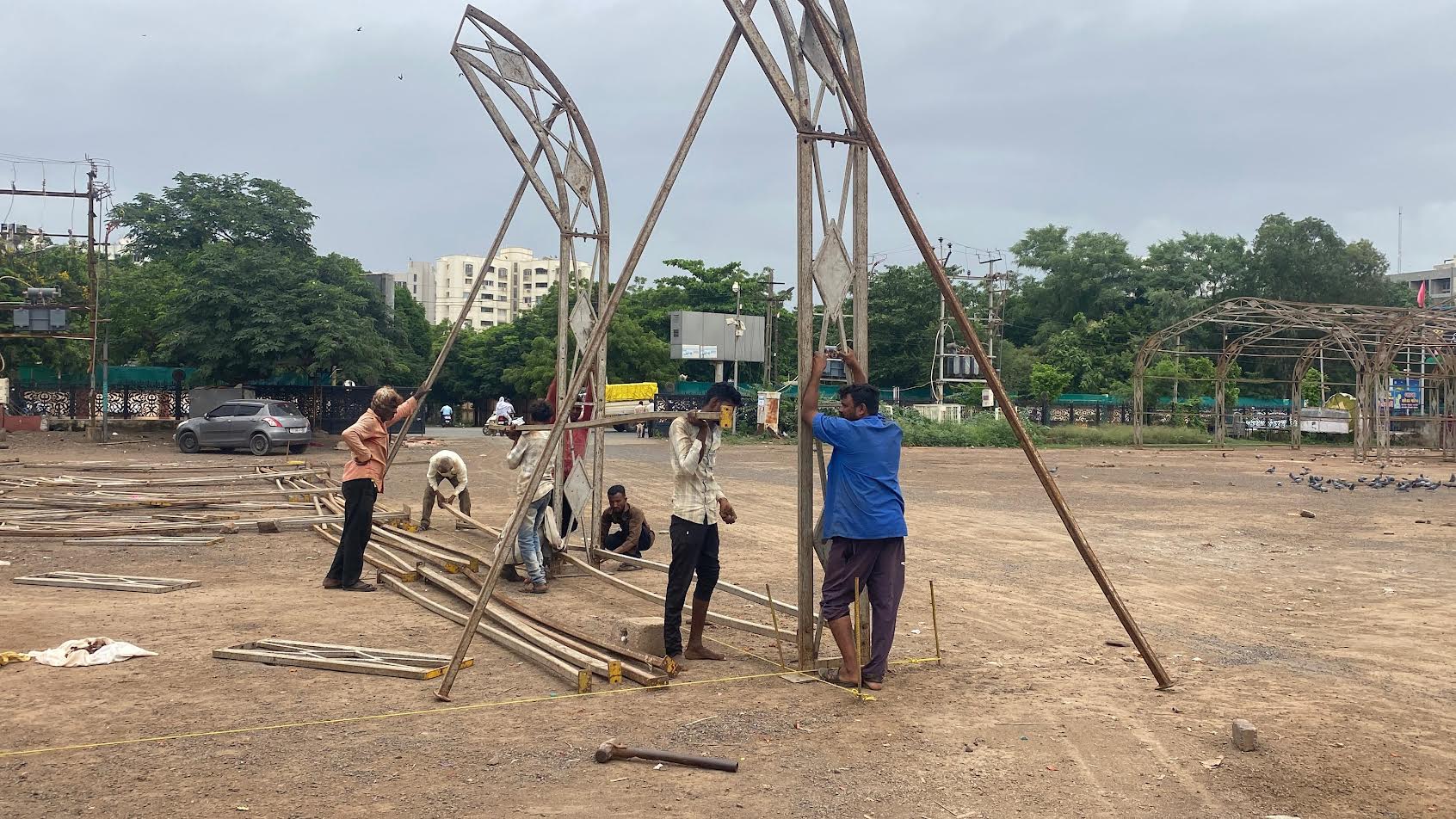જન્માષ્ટમી પર્વને અનુલક્ષીને રાજકોટમાં યોજાતા લોકમેળાની કામગીરી આખરે શરૂૂ કરી દેવામાં આવી છે. અનેકવાર વિવાદો અને અનિશ્ચિતતાઓનો સામનો કર્યા બાદ રેસકોર્સ ગ્રાઉન્ડ ખાતે મેળાની તૈયારીઓ પુરજોશમાં ચાલી રહી છે. મેળાના સ્ટોલ, મંડપ સર્વિસ અને મેદાનને સમતલ કરવાની કામગીરીને વેગ આપવામાં આવ્યો છે.