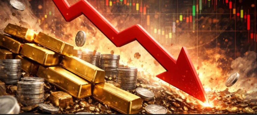 શેરબજારની સાથે સાથે સોના ચાંદી માર્કેટમાં પણ ભારે નેગેટિવ વલણ જોવા મળ્યું હતું. માર્કેટ ખુલતા ની સાથે જ સોનામાં રૂૂ.7500 અને ચાંદીમાં 16000 નું મોટો ઘટાડો જોવા મળ્યો છે. સોનુ શુક્રવારે 144492 પર બંધ આવ્યા બાદ આજે ઘટીને 136409 સુધી પહોંચી ગયું હતું. ચાંદીમાં પણ વેચવાલી નું જોર ફરી જોવા મળ્યું છે. શુક્રવારે ચાંદી 2,26,772 પર બંધ આવી હતી. જે આજે ઘટીને 211729 સુધી પહોંચી હતી. એટલે કે ચાંદીમાં આજે 16000 નું કરેક્શન જોવા મળ્યું છે. રાજકોટની બજારની વાત કરીએ તો ચાંદીનો ભાવ 222200 જોવા મળી રહ્યો છે જ્યારે સોનાનો ભાવ 143500 પર જોવા મળી રહ્યો છે. આંતરરાષ્ટ્રીય બજારમાં સોનું 4375 ડોલર પ્રતિ ઔંસ પર આવી ગયું છે જ્યારે ચાંદી 65 ડોલરે આવી ગઈ છે.