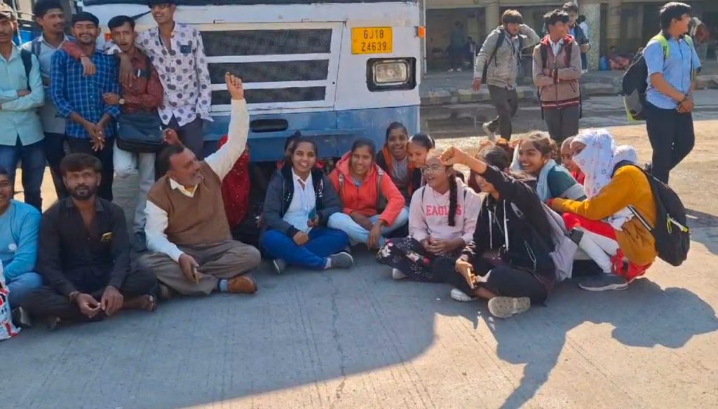 ભાડલા થી જસદણ આવતી બસમાં આઠથી નવ ગામના વિદ્યાર્થીઓ જસદણ અભ્યાસ માટે આવતા હોય છે જેમાં હાઈસ્કૂલ અને કોલેજના વિદ્યાર્થીઓ વધારે પ્રમાણમાં આવતા હોય છે ત્યારે એસટી તંત્રના અણધડ વહીવટ કારણે વિદ્યાર્થીઓ હેરાન પરેશાન થઈ રહ્યા છે. હાલ શિયાળાની ગાત્રો જાવતી ઠંડીમાં વહેલી સવારે રિક્ષામાં આવવું પડે છે ટાઈમસર રીક્ષા ન ઉપાડતા સ્કૂલ અને કોલેજમાં જવામાં મોડું થઈ જાય છે. આજે જસદણ એસટી ડેપોમાં વિદ્યાર્થીઓ દ્વારા બસની સામે બેસીને ધરણા ધરવામાં આવ્યા હતા તેમજ ડેપો મેનેજર વિરુદ્ધ સૂત્રોચાર કરવામાં આવ્યા હતા.
