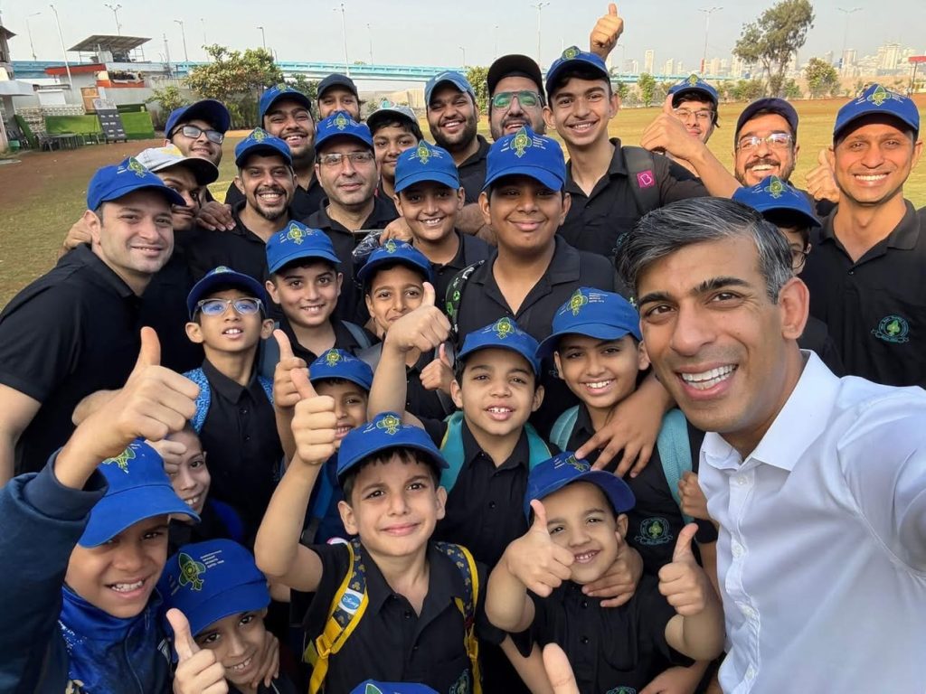 સાંજે ઋષિ સુનક ભારતીય ટીમના ખેલાડી અને કપ્તાન સૂર્યકુમાર યાદવ સાથે મુલાકાત કરી હતી.બ્રિટનના પૂર્વ વડાપ્રધાન ઋષિ સુનકે મુંબઈના વાનખેડે સ્ટેડિયમમાં યોજાયેલી ભારત અને ઈંગ્લેન્ડની પાંચમી ટી20 મેચમાં હાજરી આપી હતી. આ દરમિયાન તેમણે મેચ અગાઉ કપ્તાન સૂર્યકુમાર યાદવ સાથે મુલાકાત પણ કરી હતી. તેઓ બંને ટીમના કપ્તાન સાથે વાતચીત કરતાં નજરે પડ્યા હતા. તેમણે મુકેશ અંબાણી અને આકાશ અંબાણી સાથે મેચ નિહાળી હતી. બ્રિટનના પૂર્વ વડાપ્રધાન ઋષિ સુનકે સોશિયલ મીડિયા પ્લેટફોર્મ ડ તેમની ક્રિકેટ રમતી શેર કરી છે.