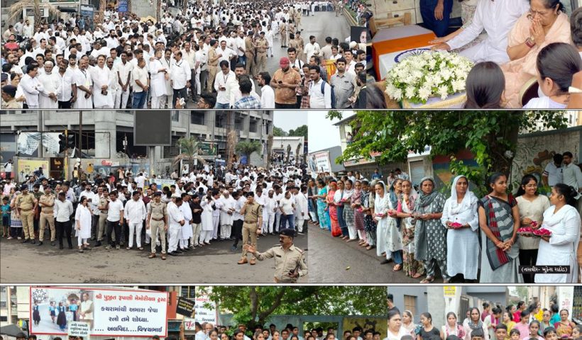 ગૃહમંત્રી અમિતભાઈ શાહ, રાજ્યપાલ આચાર્ય દેવવ્રતજી, મુખ્યમંત્રી ભૂપેન્દ્ર પટેલ સહિતના મહાનુભાવોએ શ્રદ્ધાસુમન અર્પણ કર્યા વરસતા વરસાદે રાજમાર્ગો પર નીકળેલી અંતિમયાત્રામાં રાજકોટના સંવેદનશીલ જનનાયકને લોકોની અશ્રુભીની…