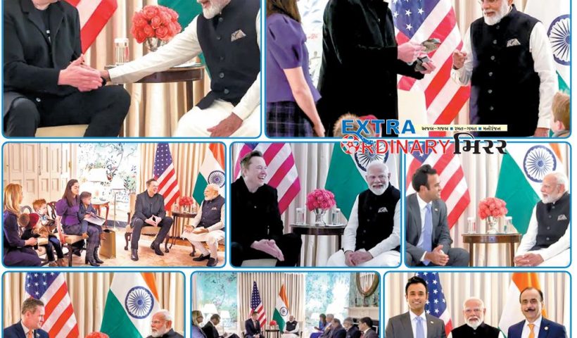 અમેરિકાના પ્રવાસ દરમિયાન વડાપ્રધાન મોદી અમેરિકાના પ્રમુખ ડોનાલન્ડ ટ્રમ્પ સહિત અમેરિકી સરકારના ટોચના લોકોને વન ટુ વન મળ્યા હતાં તેની તસવીરી ઝાંખીમાં વોશિંગ્ટનમાં એલોન મસ્ક,…