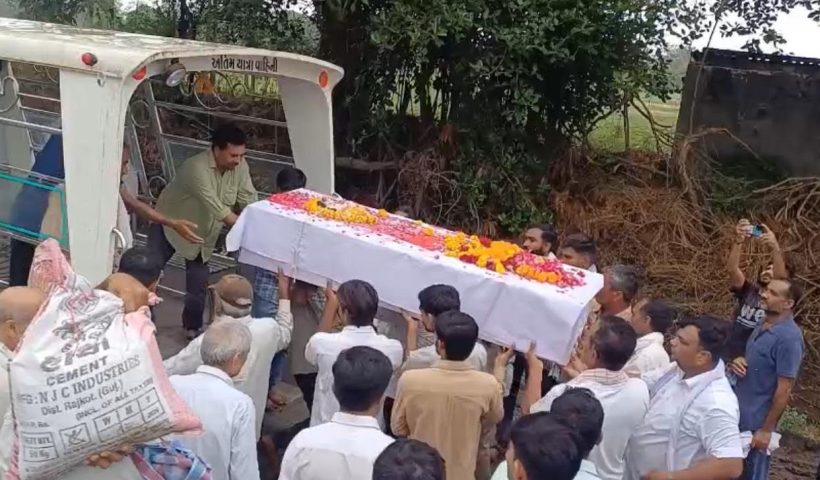 વિમાન દુર્ઘટનામાં ભાણવડ ગામના હતભાગી માતા-પુત્રની સ્મશાન યાત્રા નીકળી