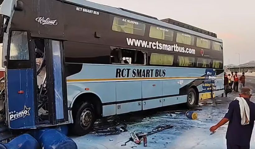 પદ્મા નદી પાર કરવા વિશાળ ફેરી બોટમાં ચડેલી બસ પાણીમાં ખાબકી; અનેક લાપતા: આંધ્ર પ્રદેશના માર્કપુરમ પ્રદેશમાં ટ્રક સાથે અથડાતાં બસ ભડકે બળી: આગ જોઇ…