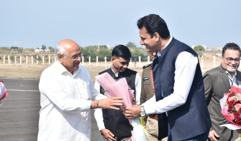 મુખ્યમંત્રી ભૂપેન્દ્ર પટેલનું દ્વારકા હેલિપેડ ખાતે ઉષ્માભર્યું સ્વાગત