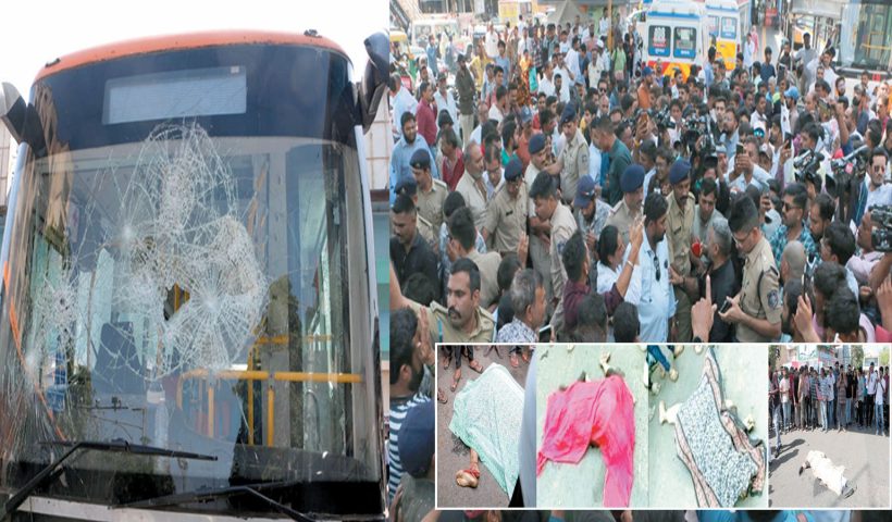 ઈન્દિરા સર્કલે અઢી કલાક સુધી ઉશ્કેરાયેલા ટોળાનો આક્રોશ ધગ ધગ્યો, પોલીસને પણ ઝપટે લઇ લીધી, ડ્રાઇવરને માંડ બચાવ્યો “સિટી બસના ડ્રાઈવર-કંડકટર સપ્લાયનો કોન્ટ્રાકટ ભાજપના…