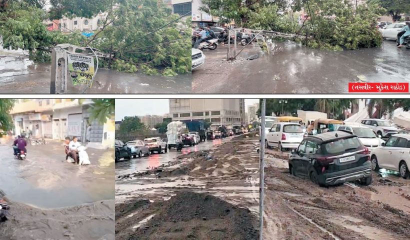 અડધા રાજકોટમાં દોઢ ઇંચ વરસાદ પડતાં જ રસ્તાઓ પર નદીઓ વહેવા લાગી, કાદવ-કીચડમાં વાહનો ફસાયા અડધા રાજકોટમાં આંધી-તોફાન સાથે ધૂળની ડમરીઓ ઉડતા વૃક્ષો-હોર્ડીંગ ધરાશાયી, છાપરાં-સમિયાણા…