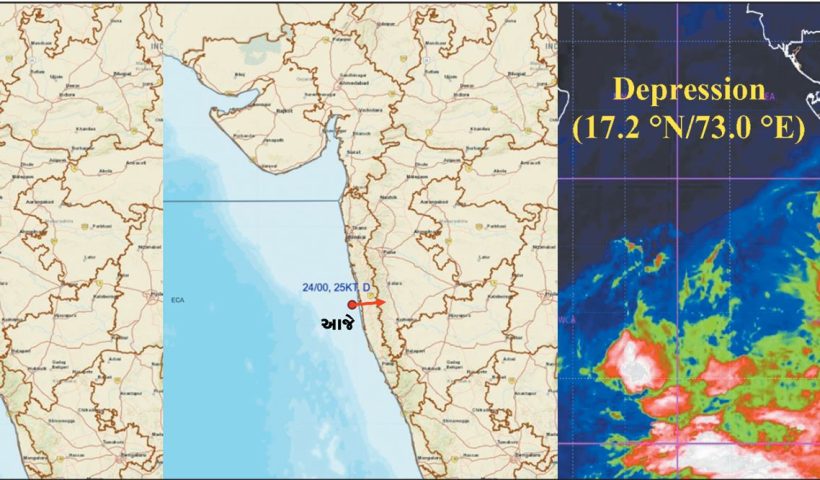 સવારે 5:30 કલાકે રત્નાગીરીથી 40 કિ.મી. દૂર કેન્દ્રિત, ઉત્તર તરફ આગળ વધવાની જગ્યાએ જમીન તરફ ફંટાયું અરબ સાગરમા ઉદભવેલા ડીપ ડીપ્રેશન હવે ઉતરની બાજુએ ગુજરાત…