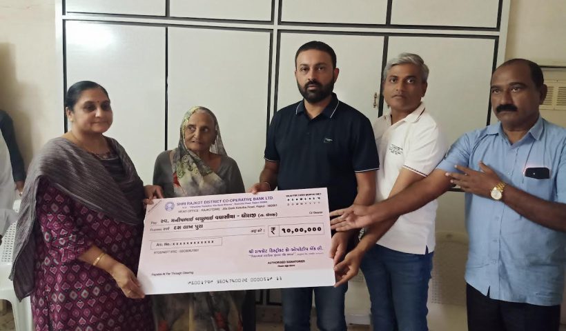 ધોરાજી શહેરની ધોરાજી વિવિધ કાર્યકારી સહકારી મંડળી લી.ના ખેડુત સભાસદ મનીષભાઈ બચુભાઈ વઘાસીયાનુ અકસ્માતે દુ:ખદ અવસાન થતા રાજકોટ જીલ્લા બેંક દ્વારા લેવાયેલ રૂૂ.10/- લાખ તેમજ…