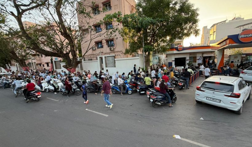 View More 24 કલાકમાં વેચાતુ પેટ્રોલ પાંચ કલાકમાં જ વેંચાઇ ગયું, અનેક પંપોમાં સ્ટોક ખલાસસતત બીજા દિવસે પંપો ઉપર લાઇનો, લોકો કેરબા-ખાલી ડબા લઇને પહોંચ્યા