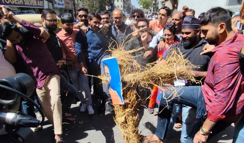જ્ઞાનપ્રકાશ સ્વામીના પૂતળાનું દહન કરતા જલાબાપાના ભક્તો