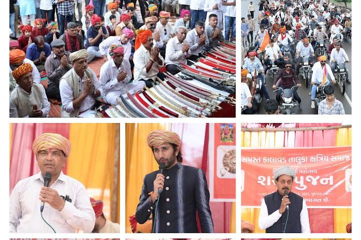 તારીખ 2 ઓક્ટોબર 2025 ના રોજ સમસ્ત કાલાવડ તાલુકા ક્ષત્રિય સમાજ દ્વારા કાલાવડ શ્રીઆશાપુરા મંદિર ખાતે પવિત્ર દશેરાના ના દિવશે શસ્ત્રપૂજન નો ભવ્ય ઉત્સવ ઉજવાયો…