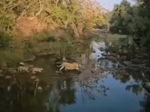 View More ઉનાના શાણાવાંકિયામાં માતાની બહાદૂરી : સિંહણના જડબામાંથી દીકરીનો જીવ બચાવ્યોસિંહણ અને બે બાળસિંહનો નદી પાર કરતો રમણીય નજારો