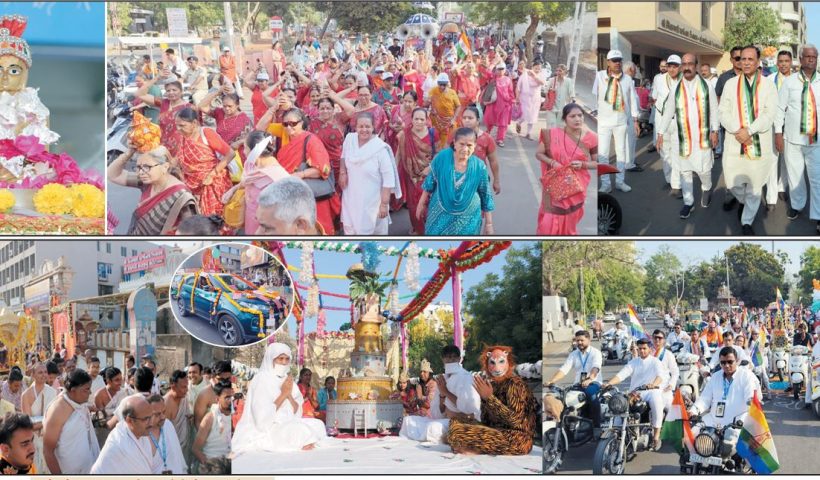 65 યુવાનોએ ઉઘાડા પગે પ્રભુજીનો રથ ખેંચ્યો, વેશભૂષામાં બાળકો, કળશધારી બહેનો અને વિન્ટેજ કારોના કાફલાનું અનેરું આકર્ષણ ધાર્મિક ફ્લોટ્સ સાથે 108થી વધુ વાહનો જોડાયા, ધર્મયાત્રાનું…