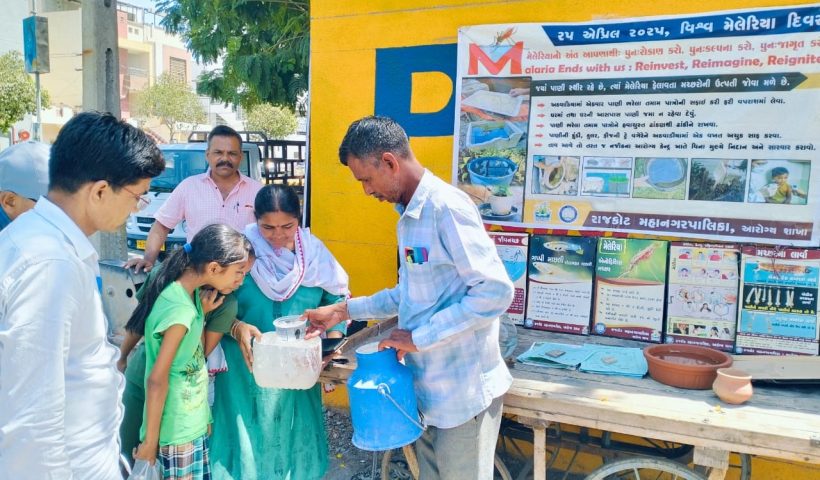 વિશ્ર્વ મેલેરિયા દિવસની ઉજવણી નિમિત્તે જાહેર પ્રદર્શન, રેલી, બેનર, પત્રિકા, પોસ્ટર મારફતે આરોગ્ય શિક્ષણ અપાયુ : 387 પોરાભક્ષક માછલીનું વિતરણ રાજકોટ મહાનગરપાલિકા દ્વારા ર5 એપ્રિલ…