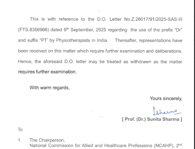 દેશભરમાંથી વિરોધ થતા તાત્કાલિક અસરથી પરત ખેંચાયો ડાયરેક્ટર જનરલ ઑફ હેલ્થ સર્વિસિસ (DGHS ) દ્વારા તા. 9 સપ્ટેમ્બર, 2025ના રોજ જાહેર કરાયેલ પત્રમાં ફિઝીયોથેરાપીસ્ટ દ્વારા…