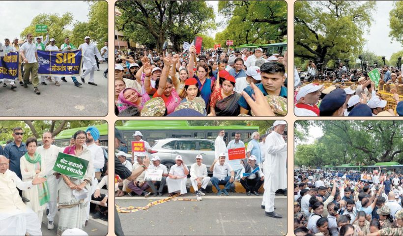અખિલેશ બેરિકેડ ઠેકયા, મહુઆ મોઈત્રા સહિત બે મહિલા સાંસદો બેભાન થઈ ગયા નવીદિલ્હીમાં આજે સવારે મતદારયાદીના ગોટાળાઓના વિરોધમાં લોકસભા અને રાજ્યસભાના વિપક્ષી સાંસદોએ સંસદથી ચુંટણીપંચની…