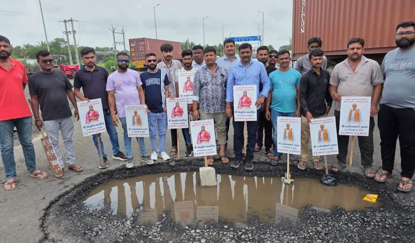 રાજકોટ-હલેન્ડા હાઇવે પર મસમોટા ખાડાઓને લઇને ધારાસભ્ય, સાંસદનું રાજીનામુ માંગતુ કોંગ્રેસ