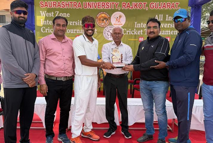 સૌરાષ્ટ્ર યુનિવર્સિટી દ્વારા આયોજિત ઓલ ઇન્ડિયા યુનિવર્સિટી ક્રિકેટ ભાઈઓ સ્પર્ધામાં સૌરાષ્ટ્ર યુનિવર્સિટીની ક્રિકેટ ટીમે ઉત્કૃષ્ટ પ્રદર્શન કરીને ઓલ ઇન્ડિયામાં ત્રીજો ક્રમ મેળવી બ્રોન્ઝ મેડલ પ્રાપ્ત…