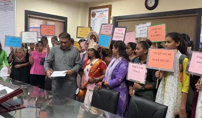 શિક્ષણ બચાવ આંદોલનનો પ્રારંભ, વિરોધ પ્રદર્શન કરી બિલ્ડિંગમાં પ્રવેશતા અટકાવતા ઝપાઝપીમાં તોડફોડ, કુલપતિને આવેદન પાઠવ્યું ગુજરાતમાં શિક્ષણનો બેફામ વેપાર થઇ રહ્યો છે અને ભ્રષ્ટાચારે મો…