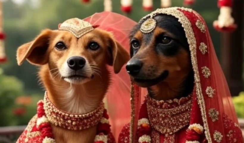 કૂતરો-કૂતરી બન્યા દુલ્હા-દુલ્હન ગ્રામજનો હોંશે-હોંશે બન્યા બારાતી