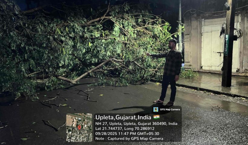 ઉપલેટા અહીંયા ગઈકાલે રાત્રિના દસ વાગ્યાથી વીજળીના કડાકા ભડાકા સાથે તથા તોફાની પવન સાથે શરૂૂ થયેલ હતો ઉપલેટા શહેરમાં એક ઇંચ વરસાદ પડેલ હતો ની…