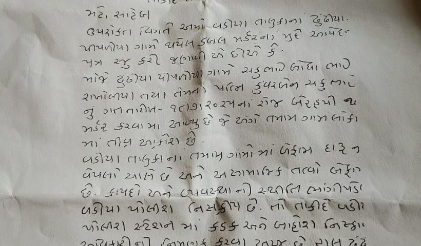 View More વડિયાના ડબલ મર્ડર કેસના સંદર્ભે અપાયેલ આવેદનપત્રમાં દારૂબંધી ફક્ત નામની હોવાની રજૂઆતવડિયાના ઢુંઢિયા પીપળિયા ગામે લૂંટના ઈરાદે વૃદ્ધ દંપતિની હત્યા