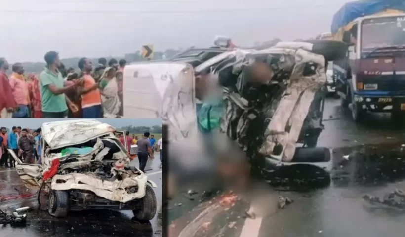 View More કેળાના તરાપા ઉપર સ્મશાનગૃહ પહોંચ્યો મૃતદેહપશ્ચિમ બંગાળના ગમખ્વાર અકસ્માત: ટ્રક અને કાર વચ્ચે જોરદાર ટક્કર થતાં 9 લોકોના કમકમાટીભર્યા મોત