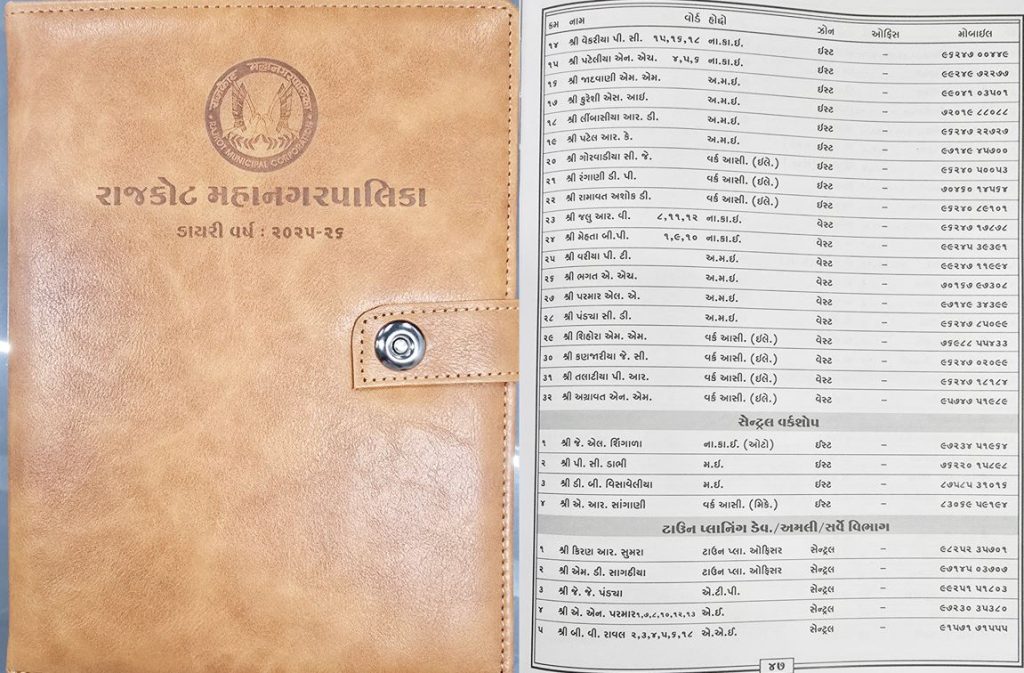 ઉપરોક્ત વિષય અન્વયે જણાવવાનું કે રાજકોટ મહાનગરપાલિકા દ્વારા વર્ષ 2025-26 ની જે 5,700 ડાયરી ₹28 લાખના ખર્ચે બનાવેલ છે. તે ડાયરીમાં હાલ જેલમાં રહેલા સસ્પેન્ડ અધિકારી એમ.ડી સાગઠીયા ફાયર ઓફિસર આઈ.વી ખેર અને ડેપ્યુટીફાયર ઓફિસર ઠેબાને ડાયરીમાં સ્થાન મળતા આશ્ચર્ય થયું છે કારણ કે હાલ આ ત્રણેય ભ્રષ્ટાચારીઓ જેલવાસ ભોગવી રહ્યા છે. જેને હજુ સુધી કોર્ટે જામીન પણ મંજૂર કરવામાં આવ્યા નથી. અને તેમ છતાં તેઓના ડાયરીમાં નામ હોય ત્યારે શાસકો સાથેની મિલીભગત ખુલ્લી પડી છે. જીએડી શાખાના મેનેજર જવાબદારી ફિક્સ થાય છે અને તેઓએ દરેક શાખાધિકારી પાસેથી કર્મચારી અધિકારીઓની માહિતી લઈ અને સંકલન કરી નામો આપવાના થતા હોય છે. ત્યારે ફાયર અને ટી.પી શાખા દ્વારા જે ઉપરોક્ત ભ્રષ્ટાચારીઓના નામો મોકલ્યા છે તેની ચકાસણી કર્યા વગર ડાયરીમાં સ્થાન આપવામાં આવ્યું છે.
