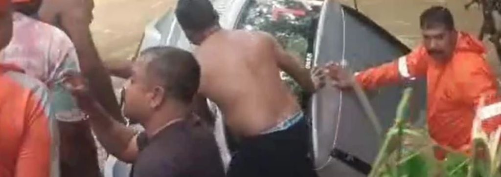 જે બાદ શિક્ષક મહેશ ભાઈ દ્વારા કારની બારી ખોલી કારમાંથી બહાર નીકળવાનો પ્રયાસ કર્યો હતો. જે દરમિયાન નદીનો પ્રવાહ ખૂબ વધુ હોવાના કારણે મહેશભાઈ બાજુમાં આવેલ એક ઝાડના સહારે લટકી ગયા હતા. જે બાદ કાર નદીમાં તણાય જતા શિક્ષિકા તનાસાબેન અને તેમના પુત્રી યશ્વી કારમાં ફસાઈ જતા કાર સાથે તણાઈ જવા પામ્યા હતા. ઘટનાની જાણ સ્થાનિકોને થતા તાત્કાલિક સ્થળ ઉપર આવી નદીમાં ફસાયેલા મહેશભાઈને બચાવી લેવાયા હતા, પરંતુ નદીમાં પાણીનો વેગ વધારે હોવાના કારણે કાર નદીના પટમાં તણાઈ જતા સ્થાનિકો દ્રારા સ્થાનિક તરવૈયાઓ માંગેલા લાઈફ સેવ ગ્રૂપ તથા વહીવટી તંત્રને કરતા ગઉછઋની ટિમ સ્થળ પર પહોંચી હતી. ઘટનાની ગંભીરતા જોતા મામલતદાર સહીત ટીડીઓ પણ સ્થળ પર પોહચ્યા હતા. મોડી રાત સુધી શોધખોળ હાથ ધરીયા બાદ પણ મા દીકરી મળ્યા ન હતા.