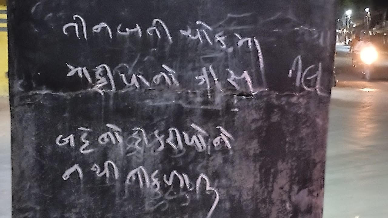 તીનબત્તી ચોકમાં ખુલ્લે આમ દેશી ઇંગ્લિશ દારૂનું વેંચાણ, માફિયાઓના ત્રાસ અને બહેન-દીકરી નથી સલામત જેવા લખાણ લખાયા