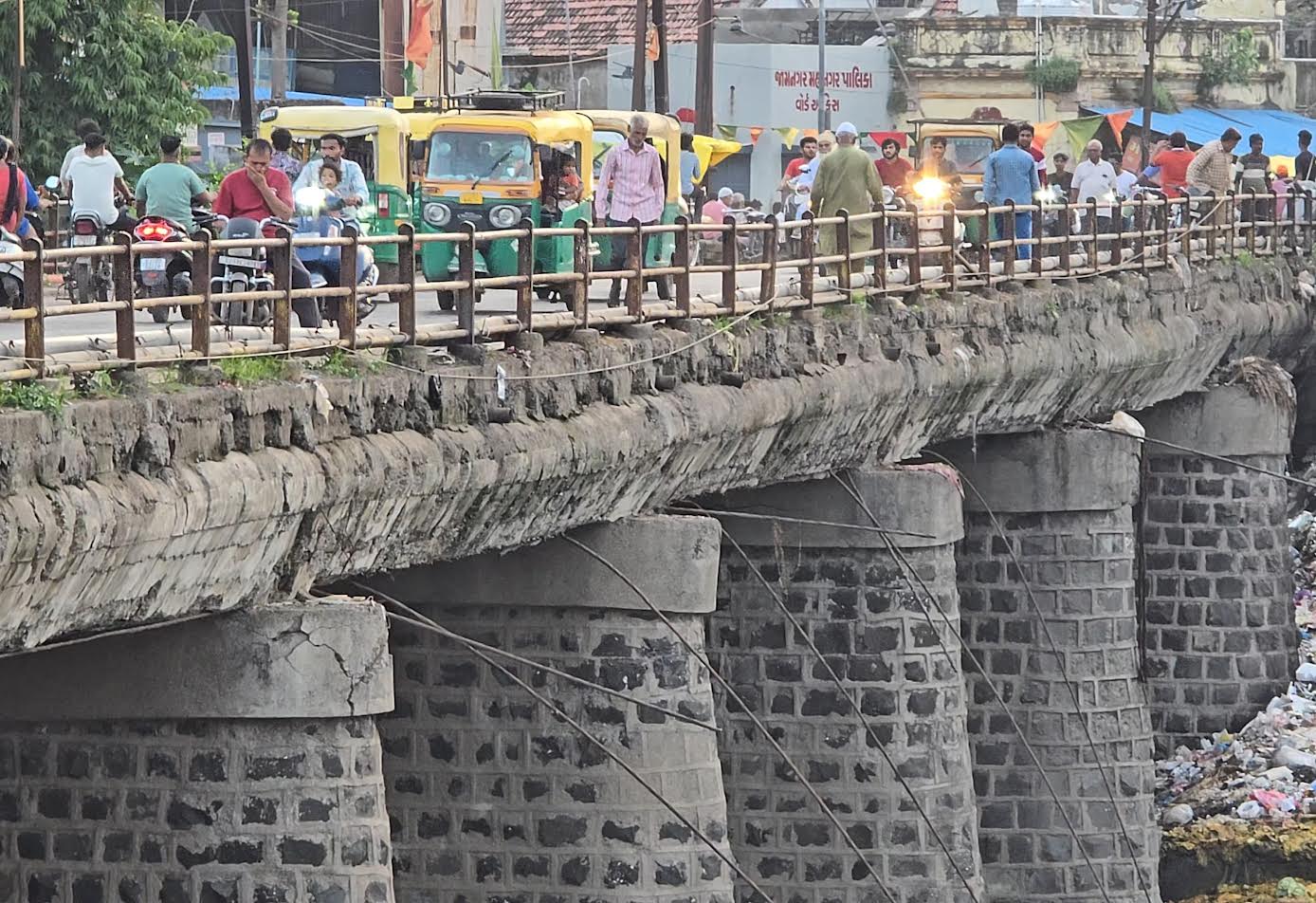 વડોદરા નજીક પાદરામાં ગંભીરા બ્રિજ દુર્ઘટના બાદ રાજયભરમાં બ્રિજ ચકાસણીનો ધમધમાટ શરૂૂ થયો છે, જામનગર અને દ્વારકા જિલ્લામાં પણ ટીમો આવી છે, બ્રીજ અને નાના પુલીયાઓને ચકાસી રહી છે ત્યારે જામનગર શહેરના કાલાવડ નાકા બહાર 40 વર્ષ જુના જર્જરીત થયેલા આ બ્રીજ ની તસવીર આવનારી ટીમને અર્પણ છે.