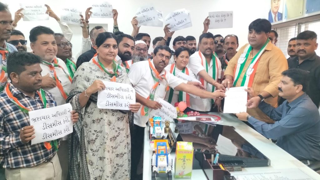 આ સંદર્ભમાં આજે જામનગર મહાનગરપાલિકાના વિરોધ પક્ષના નેતા ધવલ નંદા તેમજ શહેર કોંગ્રેસ પ્રમુખ દિગુભા જાડેજા તથા અન્ય કોંગી કોર્પોરેટરો અને કાર્યકરોએ આશ્ચર્યજનક કાર્યક્રમ આપ્યો હતો, અને હાથમાં રમકડાં વગેરે લઈ ને મેયર ની કચેરીએ પહોંચ્યા હતા, અને વધુ એક આવેદન આપ્યું છે, અને કથિત ભ્રષ્ટાચાર ના મામલે મોટા માથા ને બચાવવા નો પ્રયાસ થઈ રહ્યો છે, અને તેઓની સામે કોઈ એક્શન લેવામાં નહીં આવે, તો વિરોધ પક્ષ આગામી દિવસોમાં ઉગ્ર આંદોલન કરશે, અને ઘેરાવ સહિતના કાર્યક્રમો અપાશે, તેવી પણ ચીમકી અપાઇ છે.