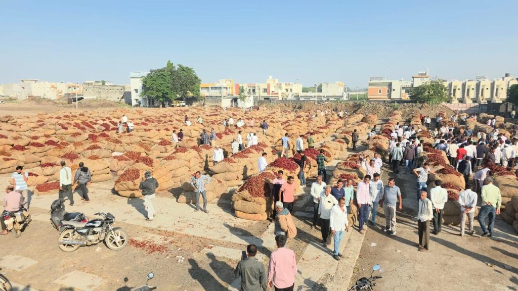 યાર્ડમાં મરચાની હરરાજીમાં સારા માલના સરેરાશ ભાવ 3000 થી લઈ 3500 સુધીના ભાવ બોલાયા હતા.