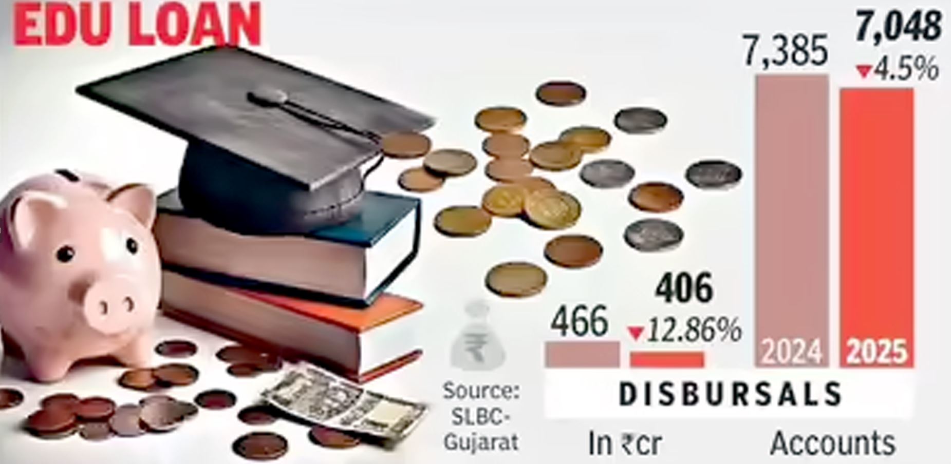 સ્ટેટ લેવલ બેંકર્સ કમિટી (SLBC) – ગુજરાતના તાજેતરના ડેટા અનુસાર, બેંકોએ ચાલુ નાણાકીય વર્ષના એપ્રિલ-જૂન ક્વાર્ટરમાં શિક્ષણ લોન હેઠળ રૂૂ. 406 કરોડનું વિતરણ કર્યું હતું, જે ગયા વર્ષના સમાન સમયગાળામાં રૂૂ. 466 કરોડ હતું.વિદેશી શિક્ષણ સલાહકારોએ જણાવ્યું હતું કે આ ઘટાડો મુખ્યત્વે યુએસ અને કેનેડા જતા વિદ્યાર્થીઓમાં મંદી દ્વારા પ્રેરિત હતો, જે ગુજરાતના મોટાભાગના વિદેશી શિક્ષણ ઇચ્છુકો માટે જવાબદાર છે. ભારતીય વિદ્યાર્થીઓ માટે સૌથી મોટા બજારો – યુએસ અને કેનેડા જતા વિદ્યાર્થીઓની સંખ્યામાં 40% ઘટાડો થયો છે, વિદેશી શિક્ષણ સલાહકાર જયજીત નાકરાનીએ જણાવ્યું હતું. આ ઇમિગ્રેશન વિરોધી ભાવના, નોકરીની તકોનો અભાવ અને નીતિઓ અંગે અનિશ્ચિતતાને કારણે છે. વિઝા ઉપલબ્ધતા પણ ચિંતાનો વિષય હતો, આ સ્થળો માટે વિદ્યાર્થીઓની પૂછપરછ લગભગ અડધી થઈ ગઈ હતી.અમદાવાદમાં વિદેશી શિક્ષણ સલાહકાર કંપની ચલાવતા ભાવિન ઠાકરે જણાવ્યું હતું કે, આ વર્ષે પાનખરમાં પ્રવેશ ખાસ કરીને પ્રભાવિત થયો હતો.