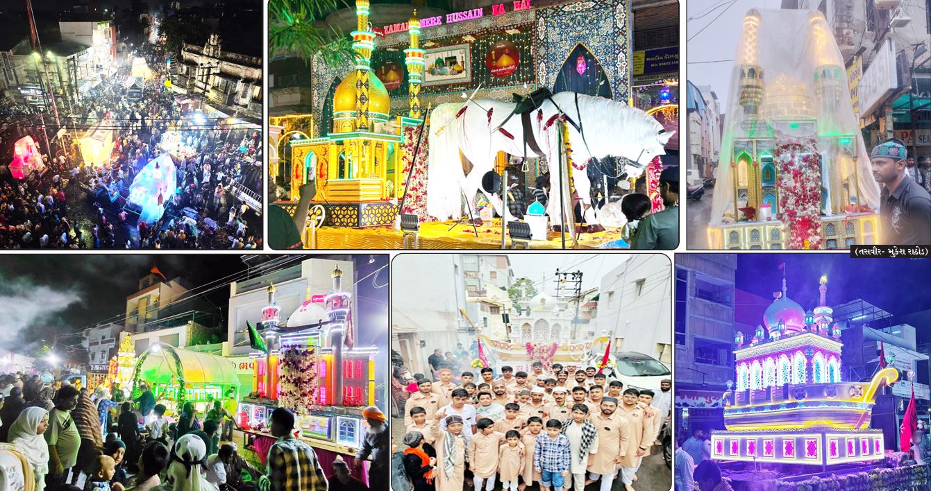 રાજકોટ શહેરમાં ગઇકાલે રવિવારે સાંજે 204 જેટલા તાજિયા અને દુલદુલનું ભવ્ય જુલુસ નિકળ્યુ હતુ. વિવિધ વિસ્તારોમાંથી કલાત્મક તાજિયાના જુલુસ લાઇનદોરીમાં નિકળ્યા બાદ મોડીરાત્રે ટાઢા થયા હતા. મહોર્રમના પર્વ દરમિયાન મુસ્લિમ સમુદાયે કરબલાના શહિદોની યાદમાં માતમ મનાવ્યુ હતુ અને તાજિયાના ઝુલુસ દરમિયાન યા હુશેનના નારા સાથે હેરતઅંગેજ કરતબો યોજયા હતા.