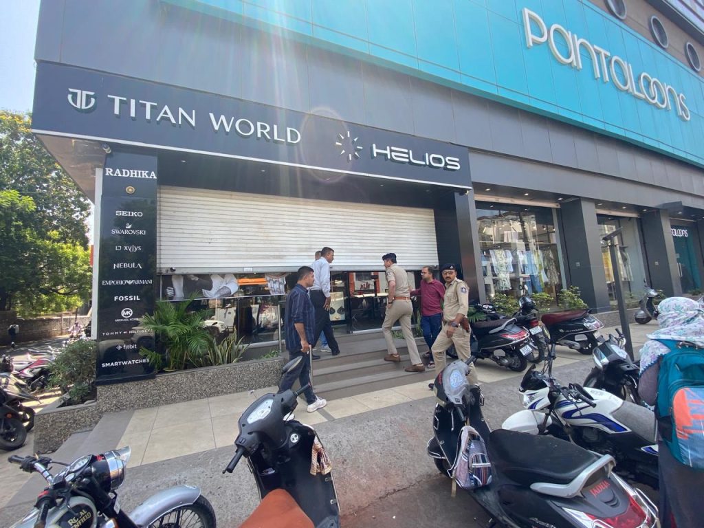 ટાઈટનના શો રૂૂમમાં ચોરી કરનાર પાંચ શખ્સોની તસ્કર ટોળકી ત્રિકોણ બાગ તરફથી આવી હતી અને શોરૂૂમ પાસે આંટા ફેરા કર્યા બાદ તસ્કર તેની પાસે રહેલા જેક વડે શટર ઊંચકી અને એક તસ્કર અંદર જાય છે અને બાકીના ચાર બહાર ઉભા રહી છે.ચોરી કર્યા બાદ તસ્કર બહાર તેના સાથીઓને સમાન આપવા જતા શટર પડી જાય છે અને બહાર ઉભેલા એક તસ્કર ફરી જેકનો ઉપયોગ કરી શોરૂૂમ અંદર ફસાયેલા તસ્કરને બહાર કાઢી અને બાદમાં પાંચેય ત્યાંથી ભાગી જાય છે.