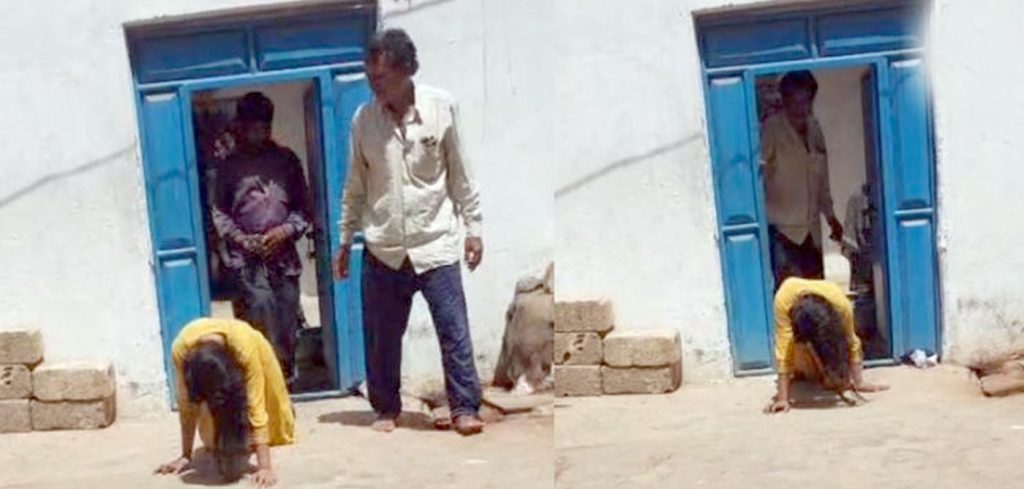 અંધશ્રદ્ધામાં વધુ એક યુવતી પર અત્યાચાર કરવામાં આવ્યો છે. દ્વારકા જિલ્લાના જામરાવલ ખાતે એક યુવતી સાથે ભૂવાએ અમાનવીય વર્તન કર્યું છે. જેમાં વળગાડ હોવાનું કહી યુવતીને ઘૂંટણિયે ચલાવી છે. જેસા વાઘેલા નામના ભુવાએ યુવતીને શ્વાનની માફક જમીન પર ચલાવે છે. આ અંગેનો વીડિયો વાયરલ થતાં દ્વારકા જિલ્લામાં હડકંપ મચ્યો છે. અવારનવાર આ પ્રમાણે થતું હોવાનો દાવો પણ સ્થાનિકો કરી રહ્યાં છે.