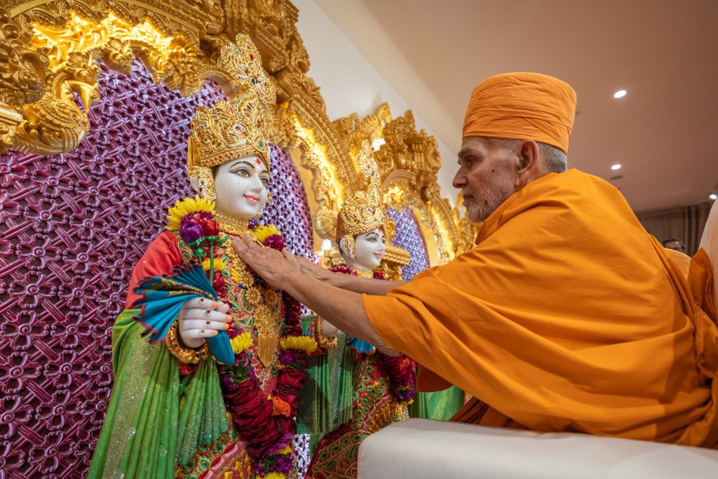 સંકુલમાં સનાતન ધર્મના ભગવત્સ્વરૂૂપો ભગવાન અક્ષર પુરુષોત્તમ મહારાજ, ભગવાન રાધા કૃષ્ણ, ભગવાન ઉમા-મહેશ્વર, ભગવાન સીતારામજી, પત્નીઓ શ્રીદેવી – ભૂદેવી સહિત ભગવાન નિવાસ બાલાજી, ભગવાન શ્રી મુરુગન સ્વામી, શ્રી હનુમાનજી – ગણપતિજી અને ગુરુપરંપરાની મૂર્તિઓની પ્રતિષ્ઠા વેદમંત્રો દ્વારા ધામધૂમથી કરવામાં આવી હતી.આ પ્રસંગે 11 દિવસીય મહાયજ્ઞનું પણ આયોજન કરવામાં આવ્યું છે. જે દ્વારા અનેક લોકોએ ભારતીય યજ્ઞીય સંસ્કૃતિનો પરિચય મેળવી યજ્ઞ નારાયણને આહૂતિ આપી હતી.