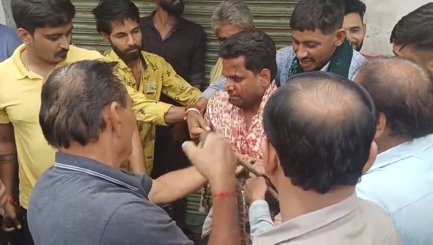 પારેવડી ચોકમા માનસિક અસ્થીર યુવાને રસ્તે જતા રાહદારીઓને લાકડી વડે લમધાર્યા બાદ ત્યા ટોળુ એકઠુ થઇ ગયુ હતુ અને ટાળાએ માનસિક અસ્થીર યુવાનને બેફામ માર મારી લોહી લુહાણ કરી મુકયો હતો અને બાદમા પોલીસ આવી જતા આ યુવાનને દોરડાથી બાંધી સિવીલ હોસ્પીટલે સારવાર માટે લઇ જવામા આવ્યો હતો.