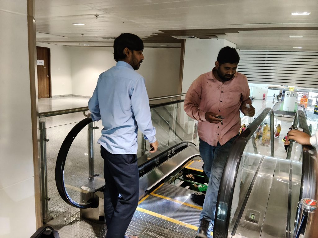 એરપોર્ટ પરથી દૈનિક અવરજવર કરતી 9 જેટલી ફ્લાઇટમાં 3000 હવાઈ મુસાફરોની અવરજવર રહે છે. જેમાંથી દરરોજ 1500 જેટલા મુસાફરોને ફલાઇટમાં જવા માટે ટર્મિનલની ઇલેક્ટ્રિક સીડીનો ઉપયોગ કરે છે. હાલ હીરાસર ઇન્ટરનેશનલ એરપોર્ટ પર અરાઇવલ વિભાગ તરફ બે એસ્કેલેટર સિડીમાંથી એક ઉપર તરફ જવાની સિડી બંધ હોવાથી મુસાફરો પગેથિયા ચડવા મજબુર બન્યા હતા. તેના કારણે મુસાફરોને ધરાર કસરત પણ થઈ જાય છે. રાજકોટ ઇન્ટરનેશનલ એરપોર્ટ પર પ્રવેશદ્વાર શ્વાનોનો અડ્ડો બની ગયો છે. પ્રવેશ દ્વારે જ શ્વાનોનું નિરાતે સુતા જોવા મળે છે.